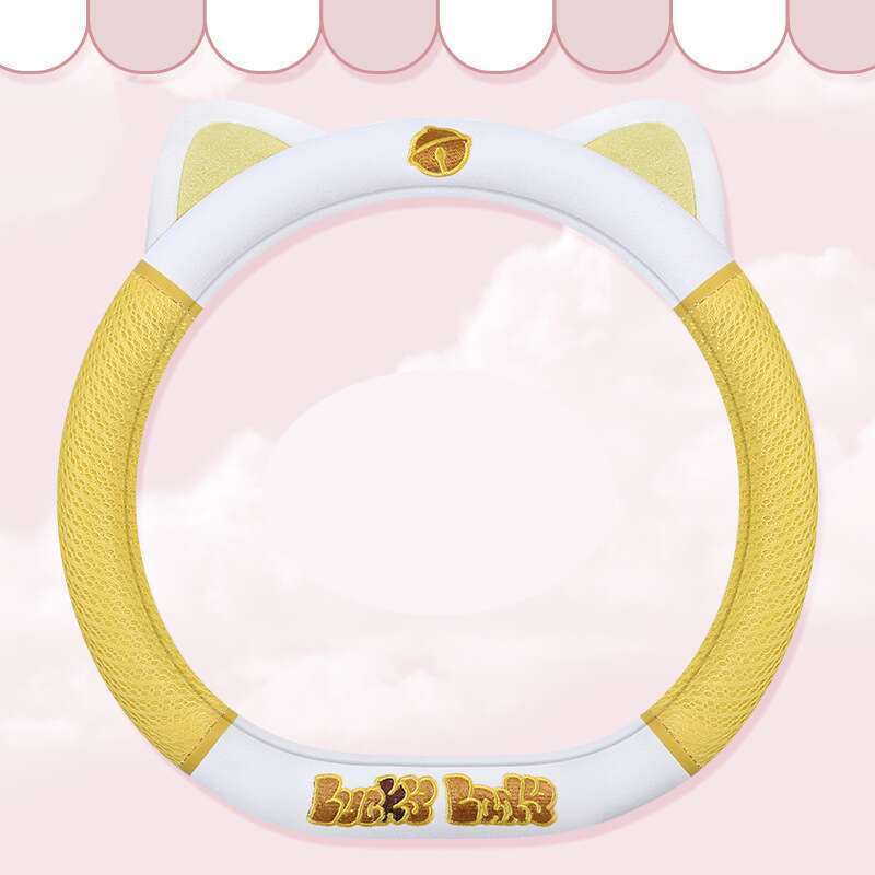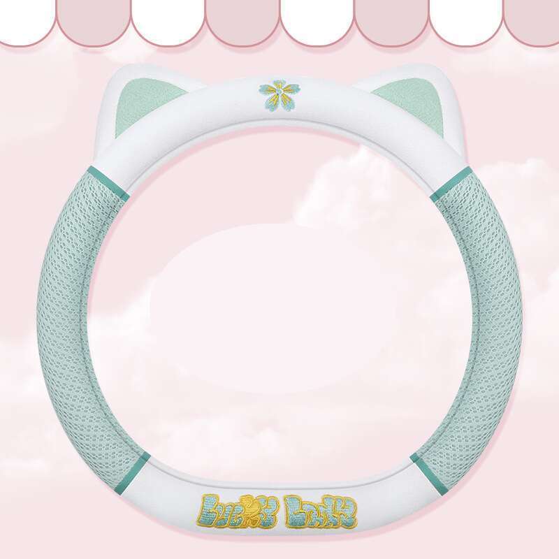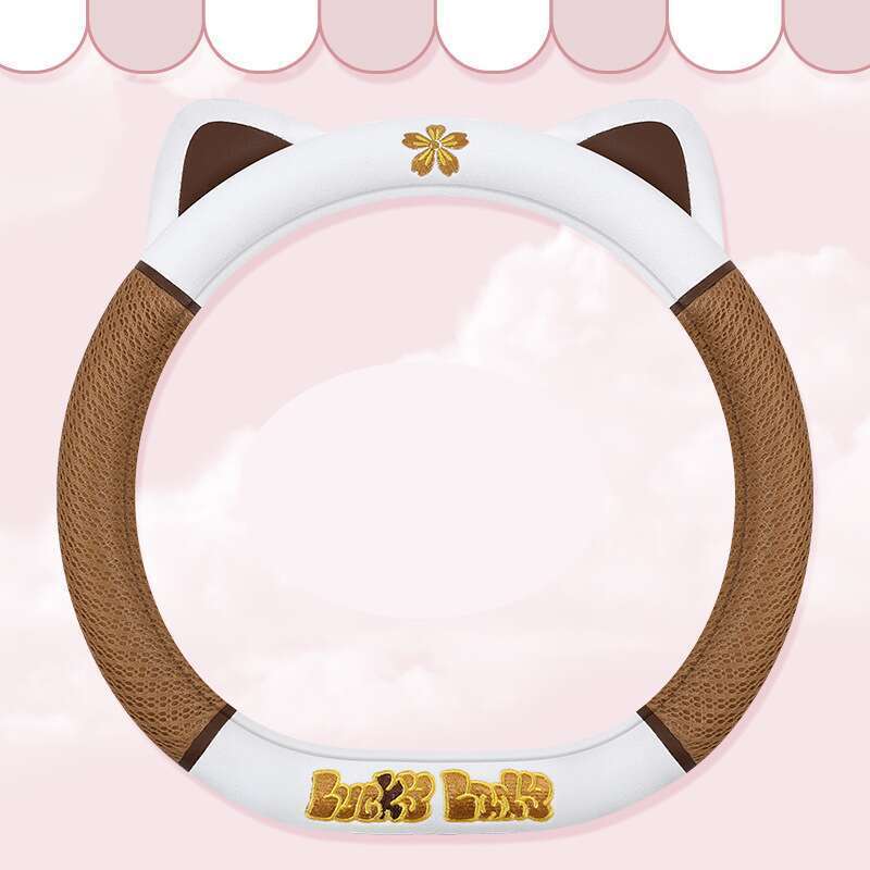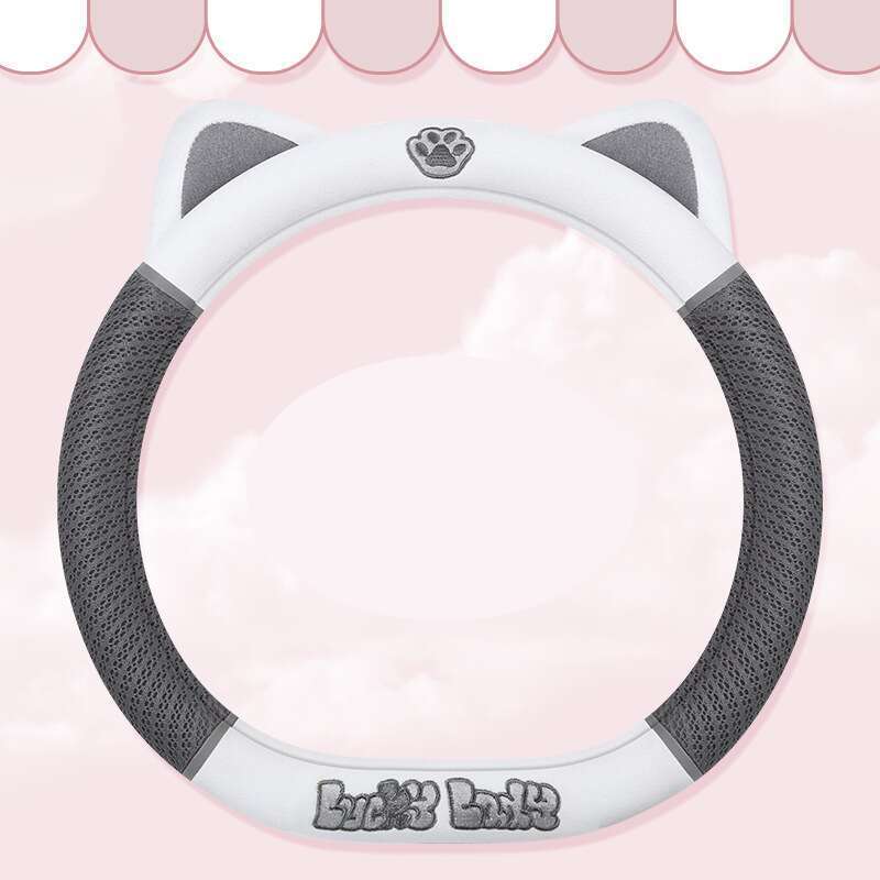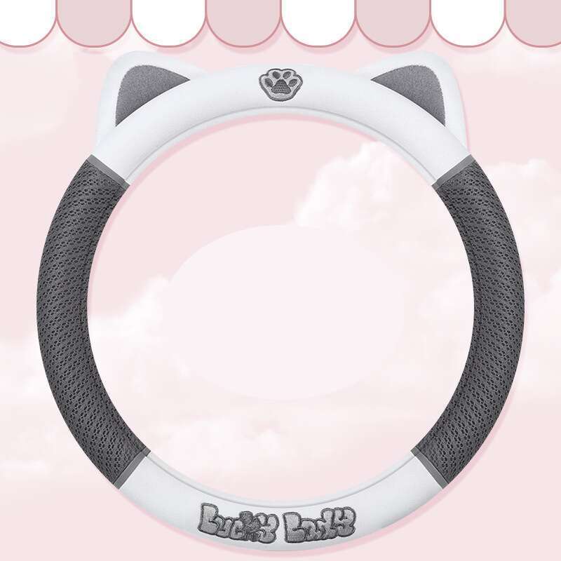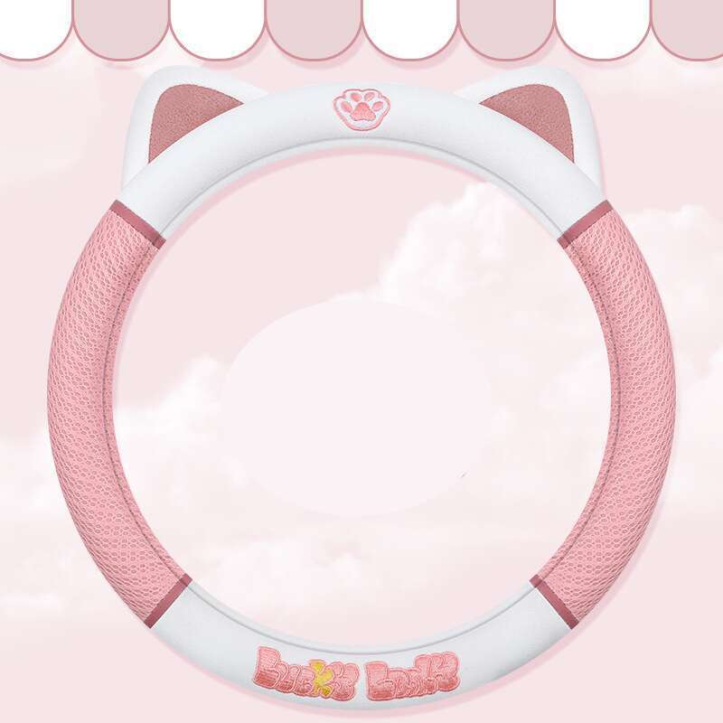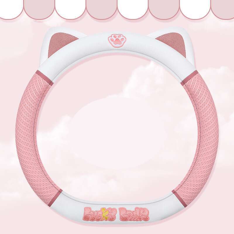 Car ins cute cartoon sweet cat steering wheel cover, suitable for all seasons, mesh design, small cat car handle cover