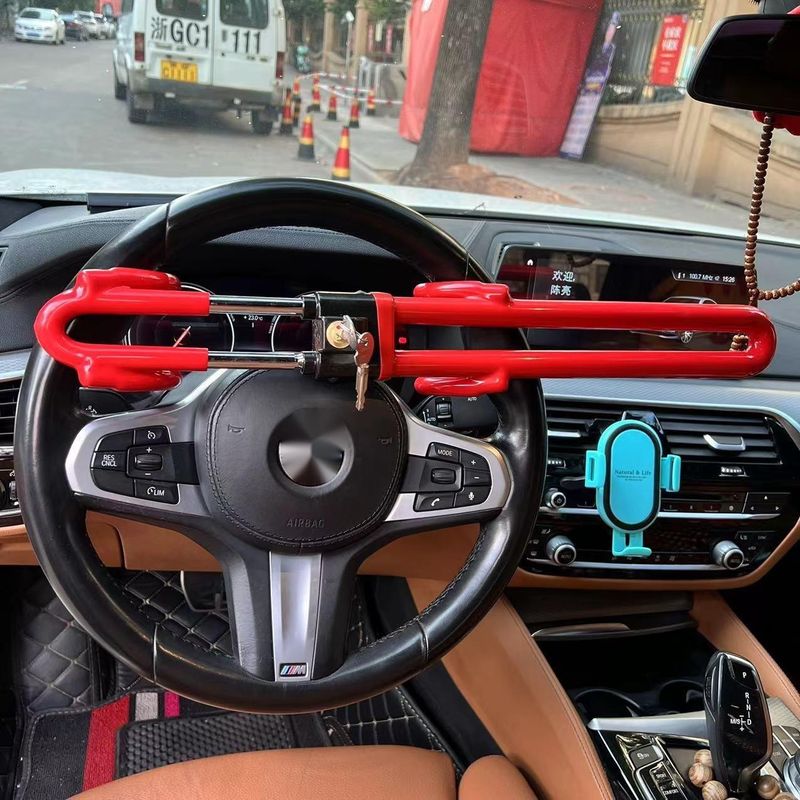 New Car Steering Wheel Lock Multifunctional Adjustable Telescopic Security Anti-theft Lock Thickened Window-breaking Metal U-shaped Lock