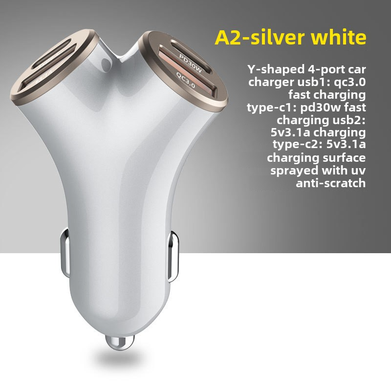 New Y-shaped Four Port 78W Super Fast Charging Car Phone Charger