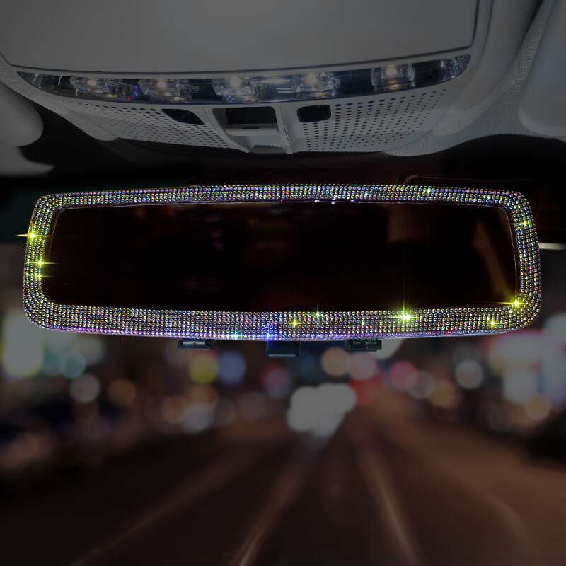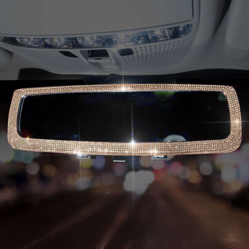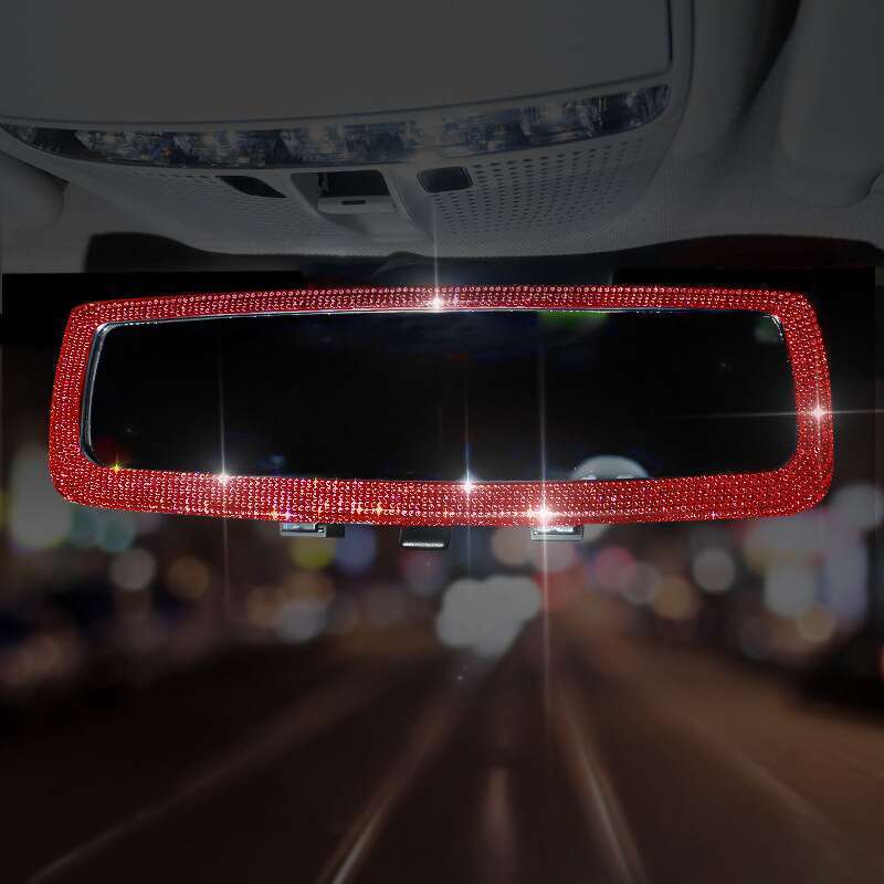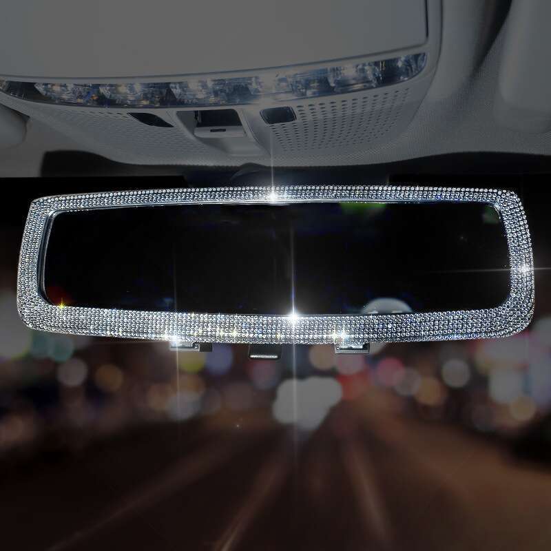 Automobile rearview mirror? Decorative set with creative personality, cute diamond inlay, car interior rearview mirror decoration for ladies