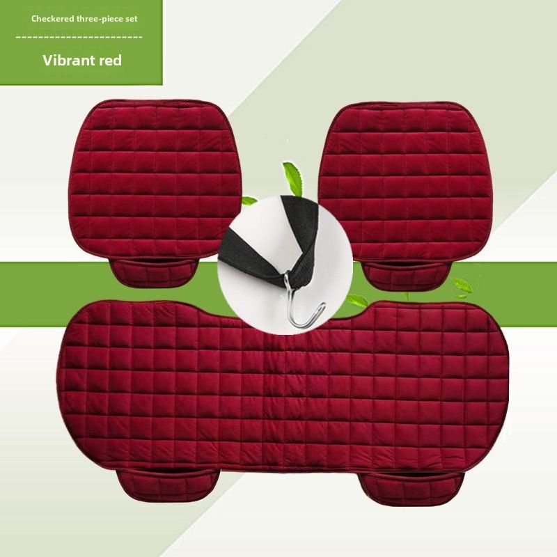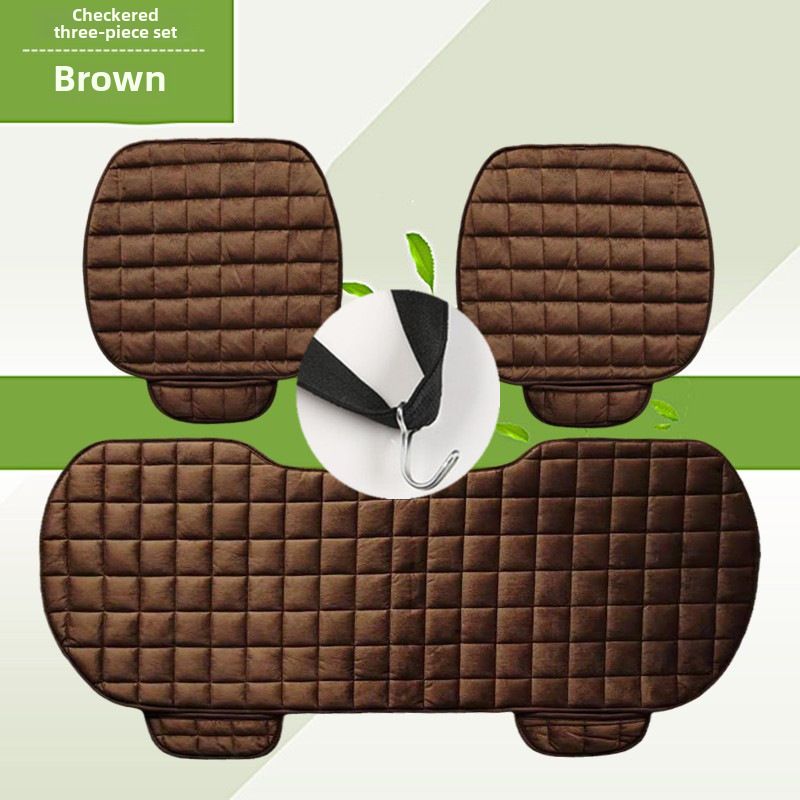 Winter-Ready Design:This car seat cushion is designed for the winter, providing optimal warmth and comfort during cold months. Backless Grid Embroidery:The backless grid embroidery adds a stylish touch while ensuring breathability and comfort for long drives. Velvet Material:Made from high-quality velvet material, this cushion offers a soft and luxurious feel, enhancing your driving experience. No-Tie Feature:The no-tie feature of this cushion makes it easy to install and adjust, saving you time and effort. Three-Piece Set:This set includes a front and rear center cushion, providing comprehensive coverage for your seat. Single Piece Chair Pad:The single piece chair pad design allows for easy cleaning and maintenance, making it a practical choice for your vehicle.