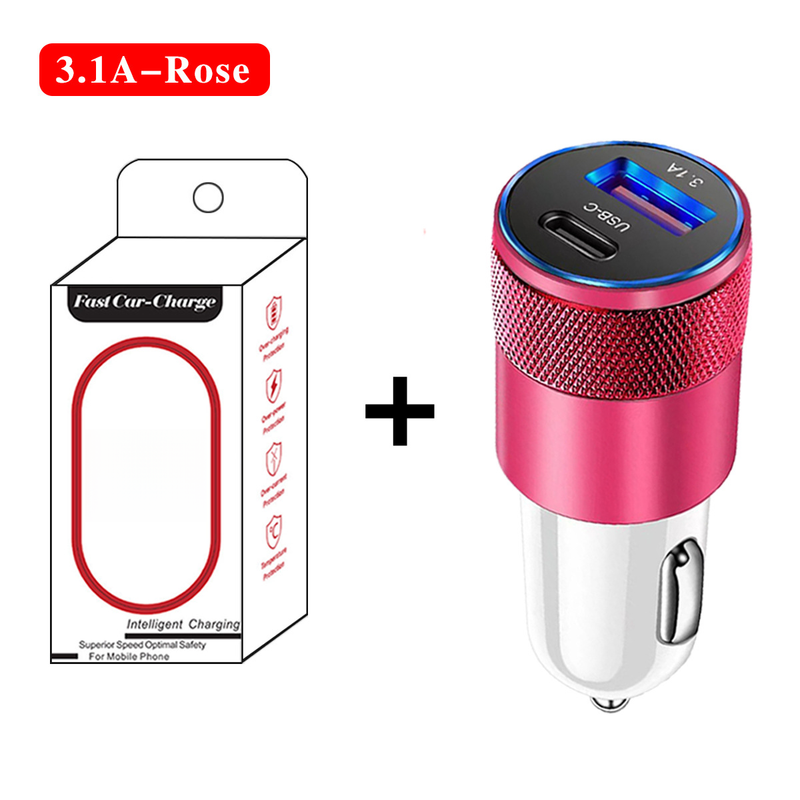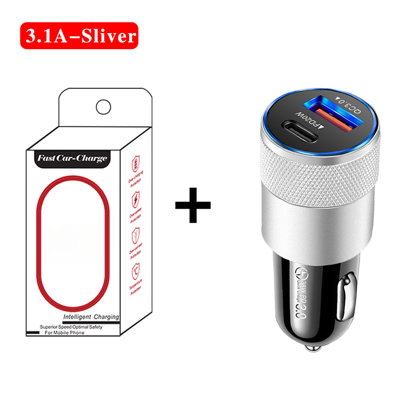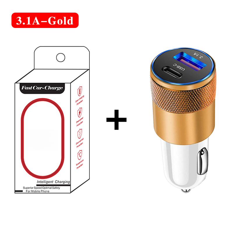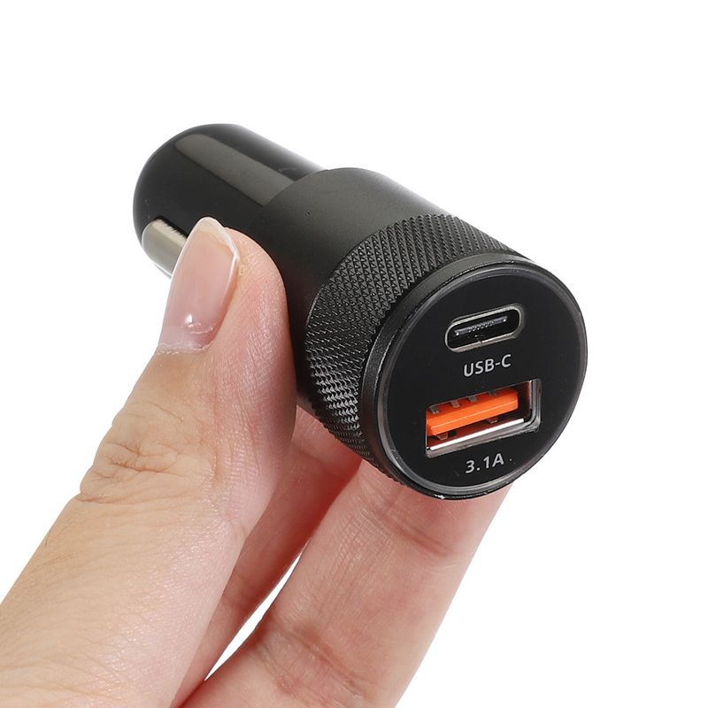 3.1A USD+PD Small Steel Cannon Metal Aluminum Alloy Charge USB-C+USB Car Charger