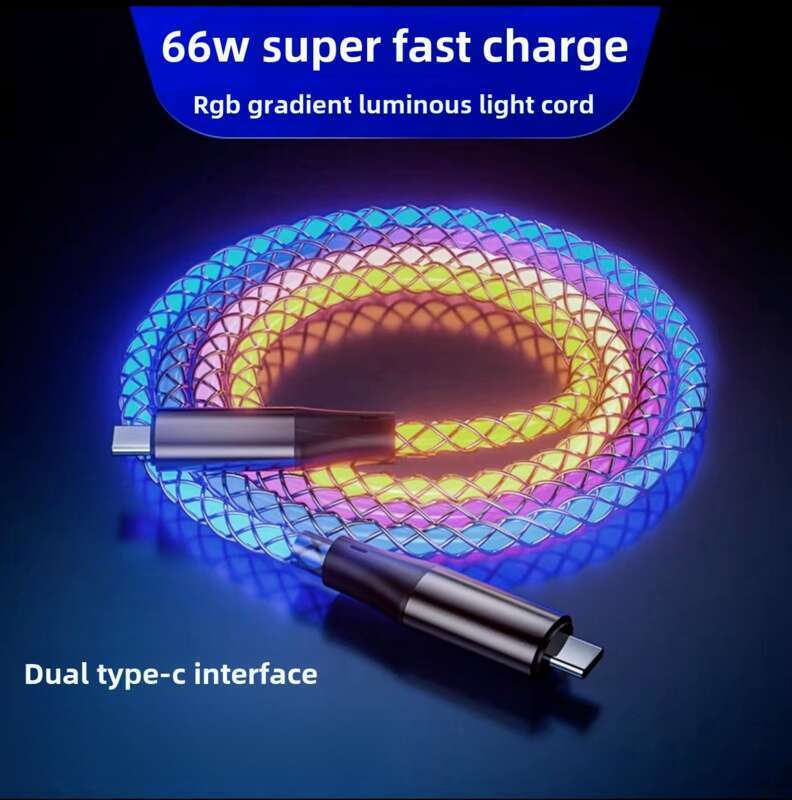 6A Super Fast PD Colorful Luminescent Data Cable Typec To Charging Wire Three In One Machine Vehicle RGB