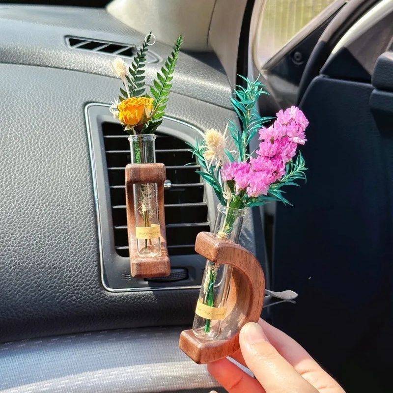 Car air outlet special car mounted vase center console hydroponic flower holder interior decoration solid wood ornament