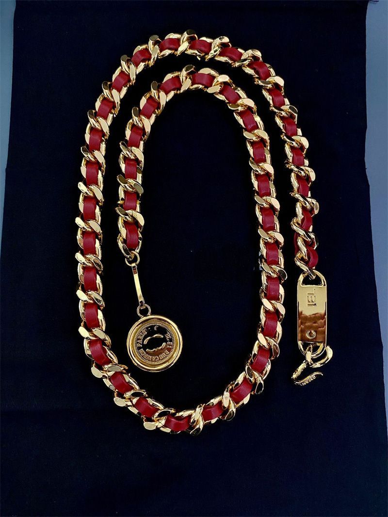 Designer Vintage Belts Gold Red Leather Rope Chain for Women Letter Dress Waistband Copper Adjustable Lady High Quality
