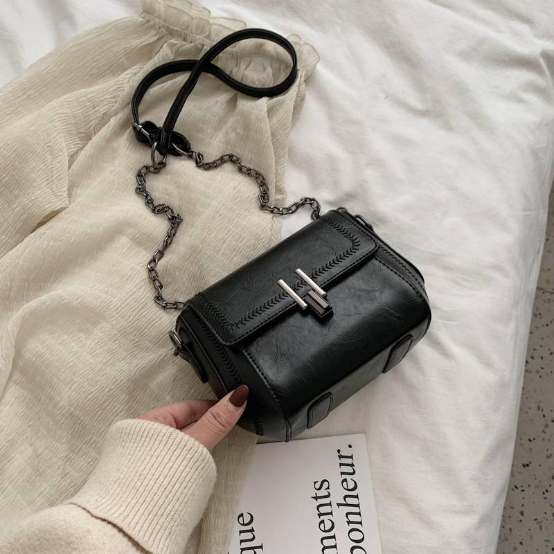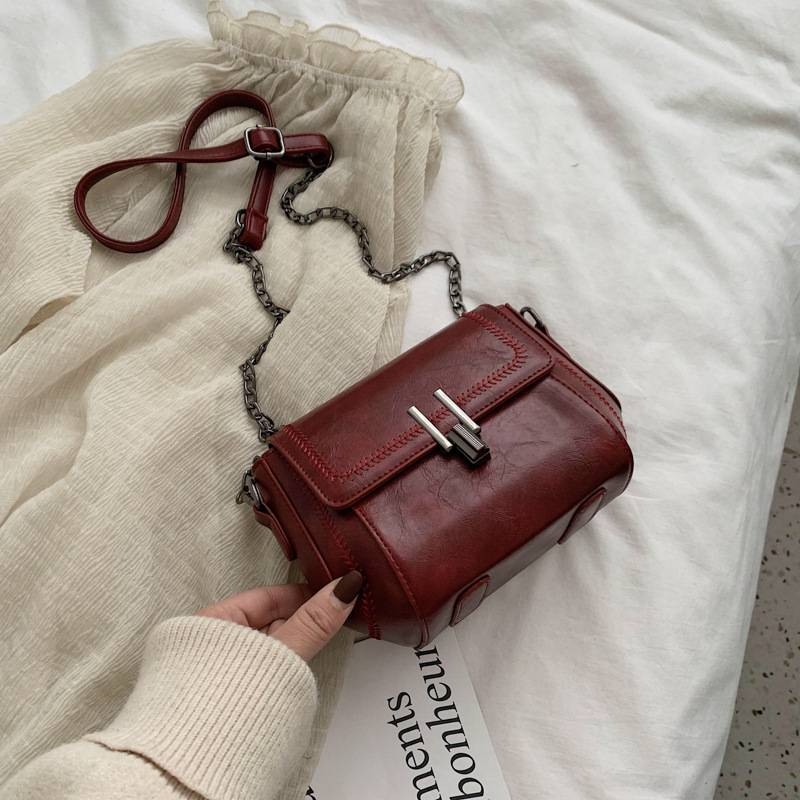 Vintage Trend Women's Crossbody Bag Chain Hasp Zipper PU Leather Square Shoulder Bags Chic Lady Versatile Pack