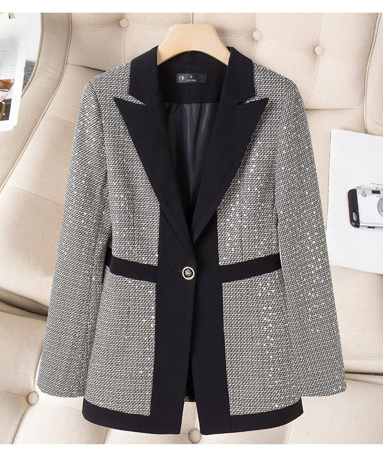 Women's Clothing large size women's plaid color matching suit women's spring new style temperament slim high waist flared pants