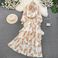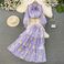 HomePopular CategoriesWomen's SetsWomen's Clothing light mature style, lantern long sleeves, bowknot, loose printed chiffon shirt, two-piece suit, high waist skirt