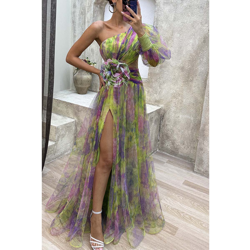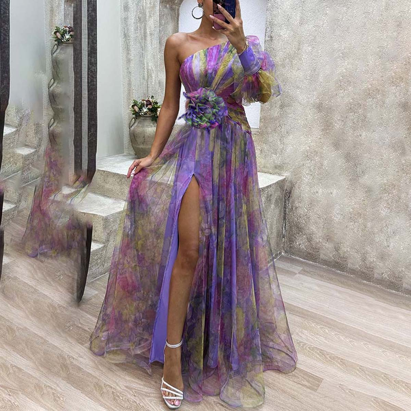 HomePopular CategoriesWomen's DressesWomen's party mesh diagonal shoulder dress INS casual fashion dress
