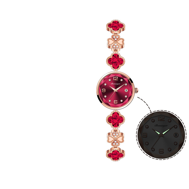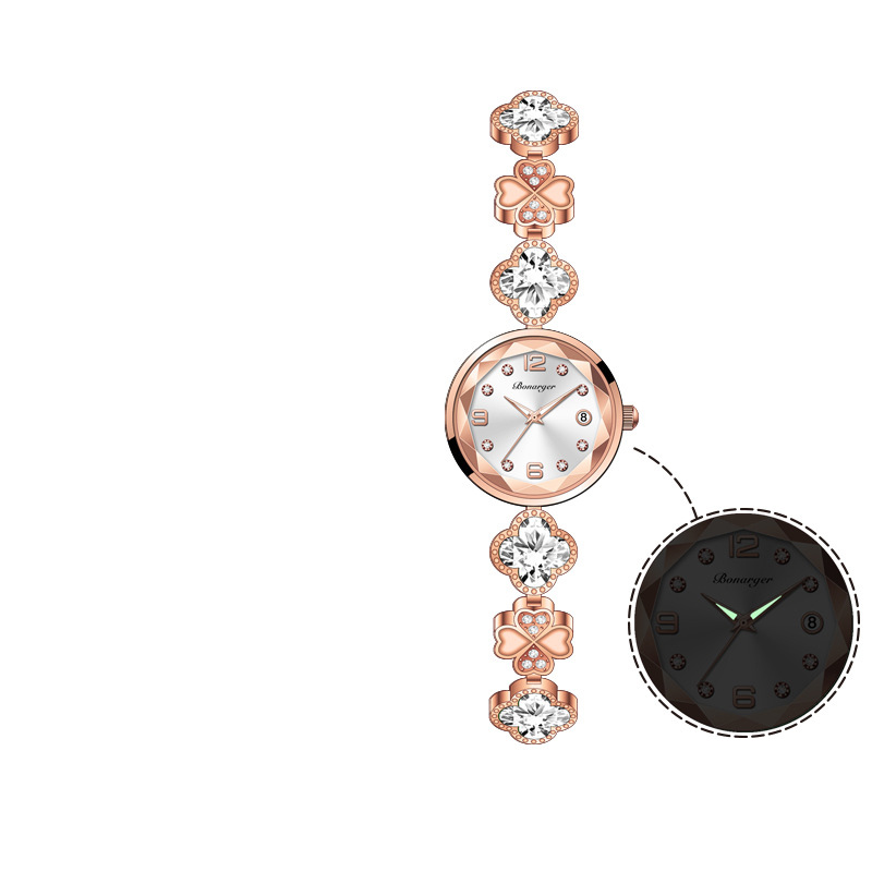 Women's Watch Four-leaf Clover Charm Quartz Bracelet Watch Luxury Rhinestone Analog Stainless Steel Waterproof Wrist Watch